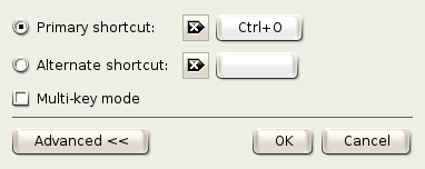 В этом окне можно задать две комбинации клавиш для данного действия: Основную и Вспомогательную.