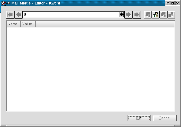 Для небольших наборов данных, или если у вас нет базы данных, содержащей данные для слияния, KWord даёт возможность ввести данные непосредственно в KWord в форме таблицы. Затем эта структура данных может использоваться для создания документов, в которых эти данные вставлены в заранее определённые места.