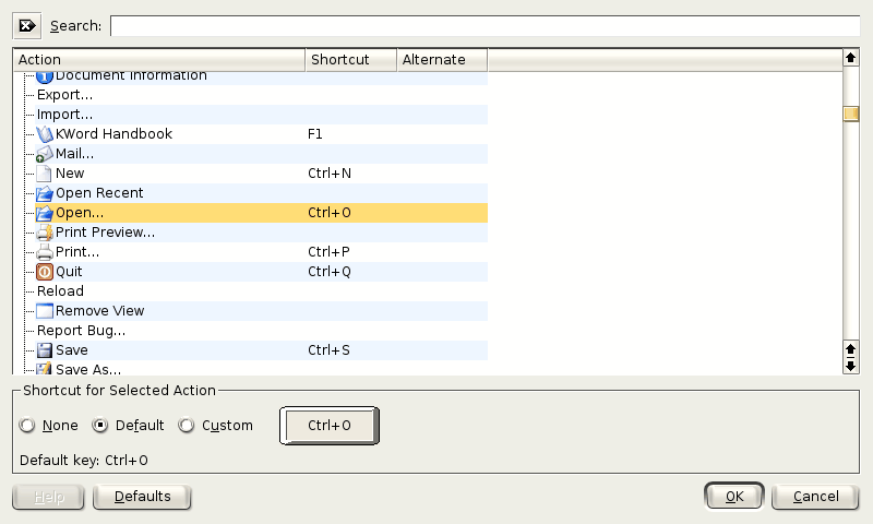Теперь введите с клавиатуры нужную комбинацию клавиш. С этого момента KWord запомнит её. Окно диалога закроется автоматически.