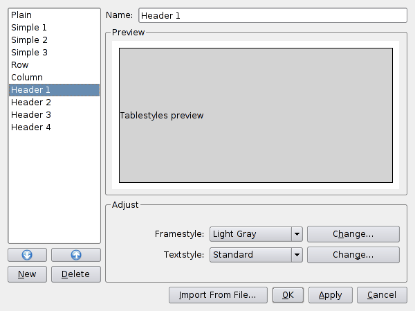 Чтобы создать новый стиль таблицы, выберите пункт меню ->. Появится диалоговое окно.
