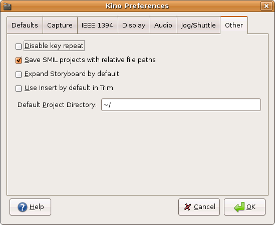 Default Project Directory : Set the default directory used by the File/Open and File/Save dialogs. This default is used until a new directory is chosen during the current Kino session. Then, on the next session, Kino reverts back to your default project directory.